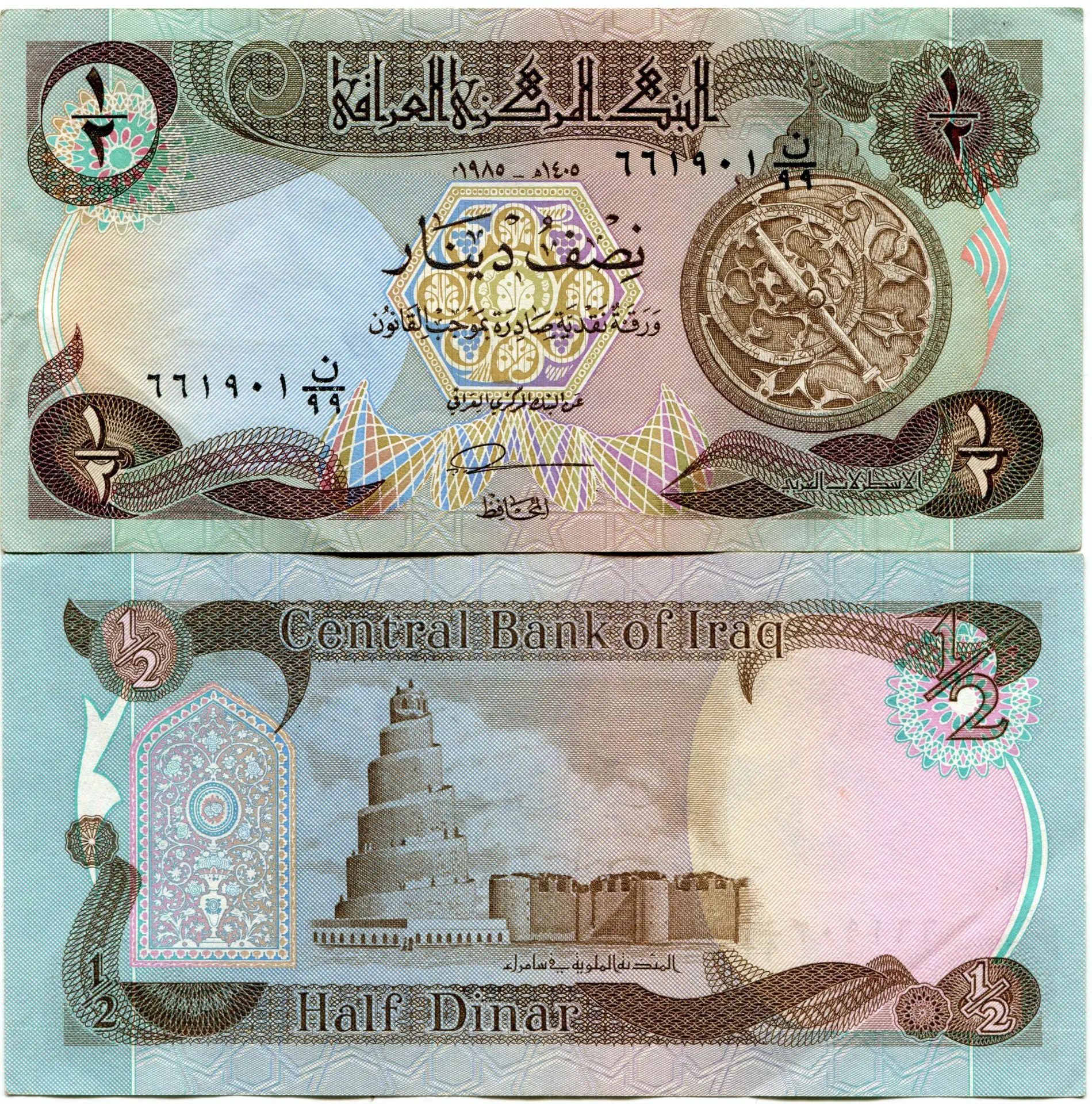 Iraq P68 AUnc Astralobe 1/2 Dinar 1980 Banknote Swiss Print x 10 Pieces – Sequentially Numbered Notes