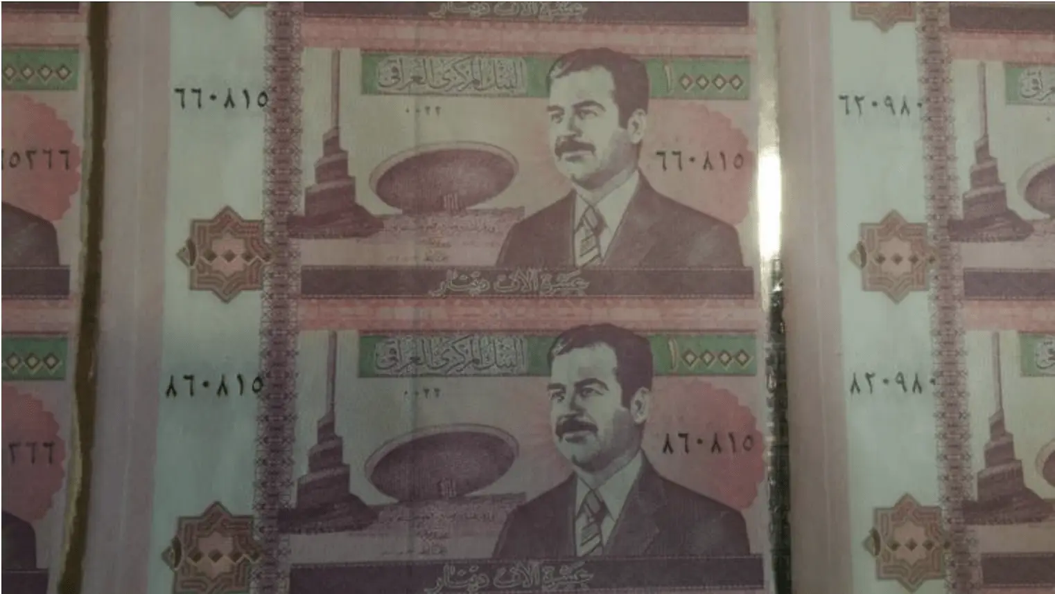 Saddam Hussein Iraq Year 2002 10 000 Dinars – P 89 – UNCUT SHEET OF 9 BANKNOTES